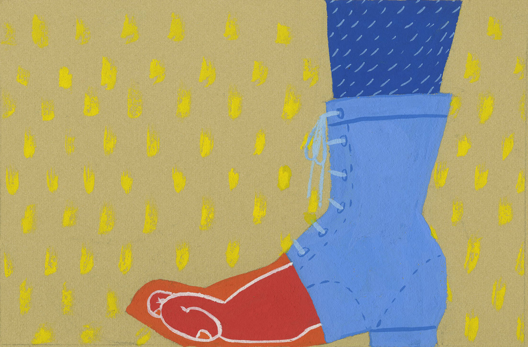Gouache triptych describing the proverb, "Only the wearer knows where the shoe pinches."